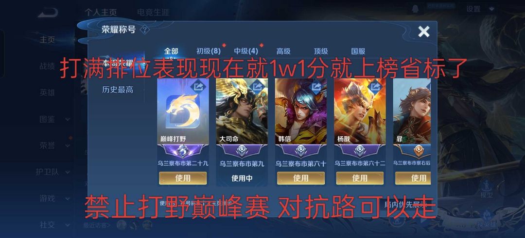 正式现在榜市标巅峰打野禁巅峰1900+历史省1大司命杨戬小国标老夫子哪吒国服+至尊宝永曜之星低价包