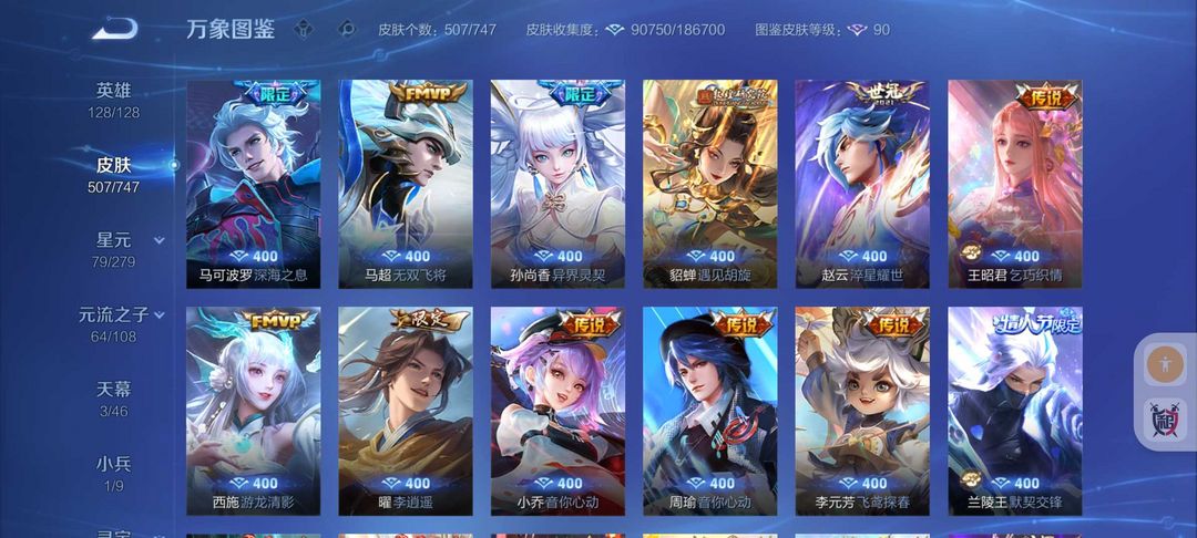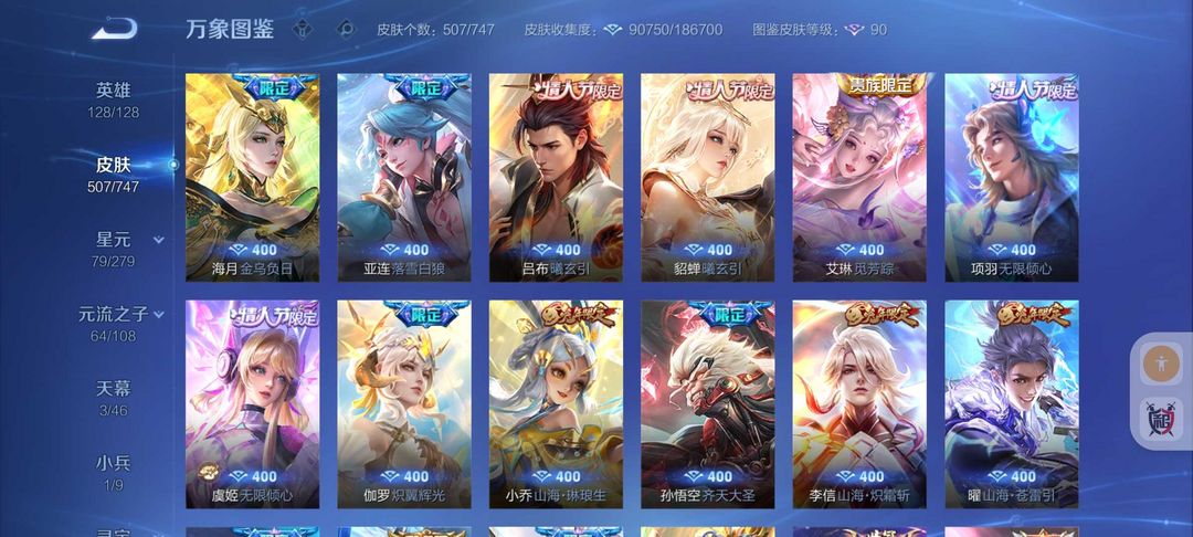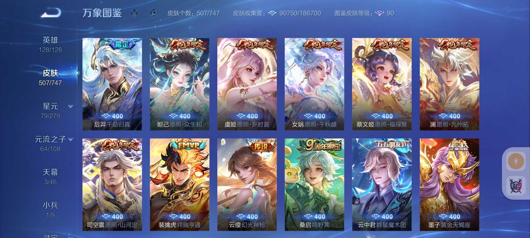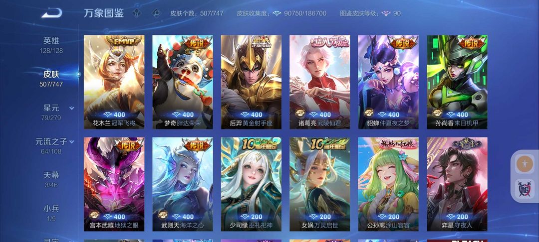 装备描述:无双V10号❤️507皮肤6水晶❤️貂蝉繁华慕夏❤️62传说❤️kitty小兵❤️传说天幕❤️诡秘之主❤️满蛇年限定❤️