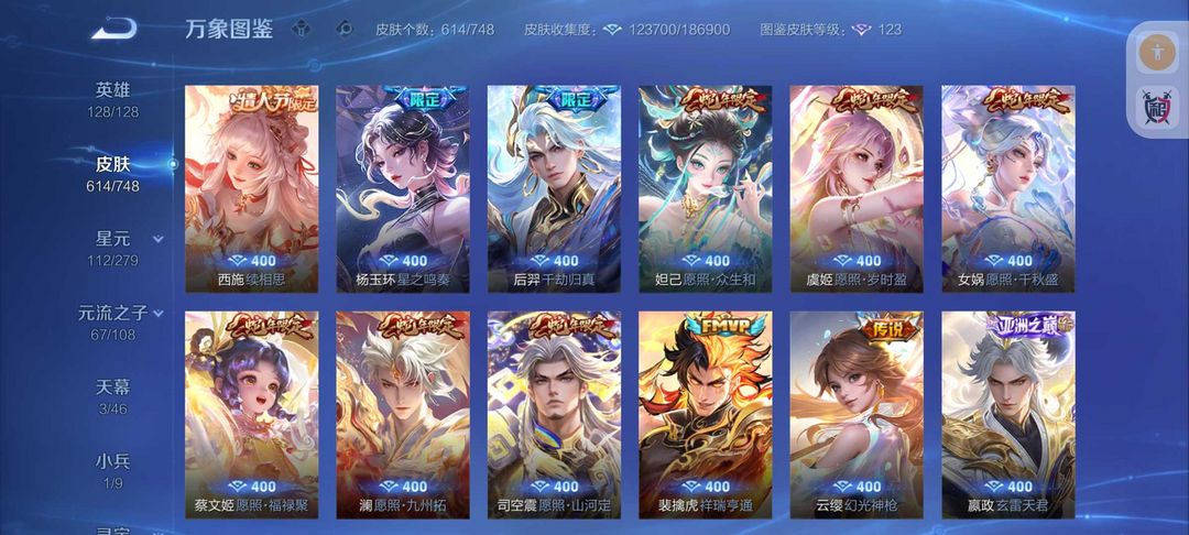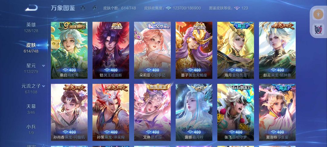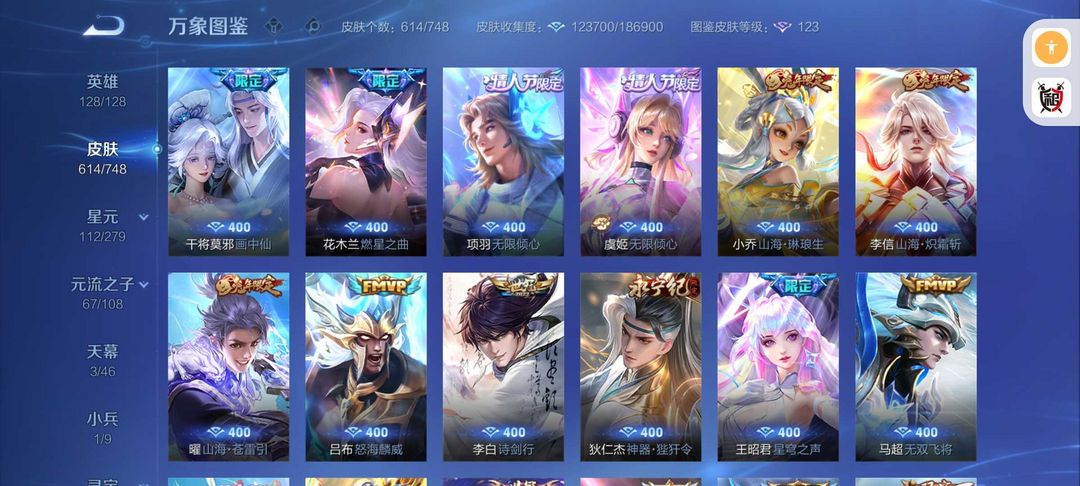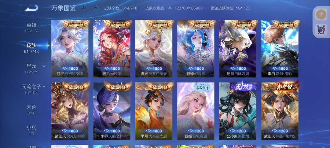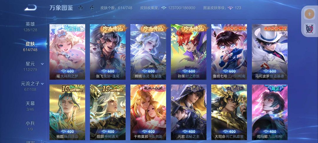 无双V10号614皮肤号法王金标号❤️11水晶❤️3无双6珍品❤️倪克斯❤️离烟恨❤️怪盗基德大耳狗