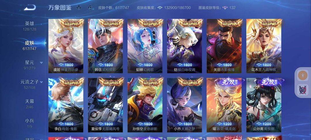 精品617皮肤12典藏狐妖小兵❤8无双❤️91传说❤️满蛇年限定皮❤️离烟恨花合斗❤️十周年限定❤️