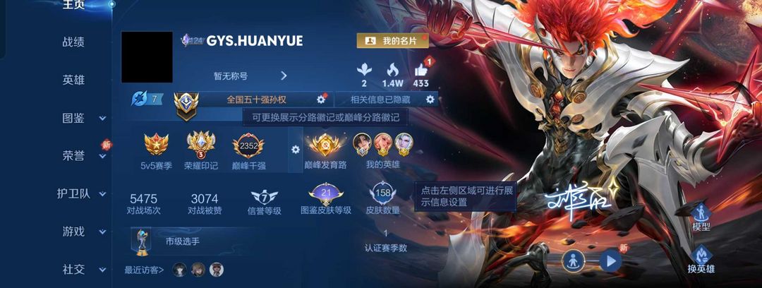 游戏区服:王者荣耀-QQ安卓-QQ账号 -手Q364区-野兽之痕