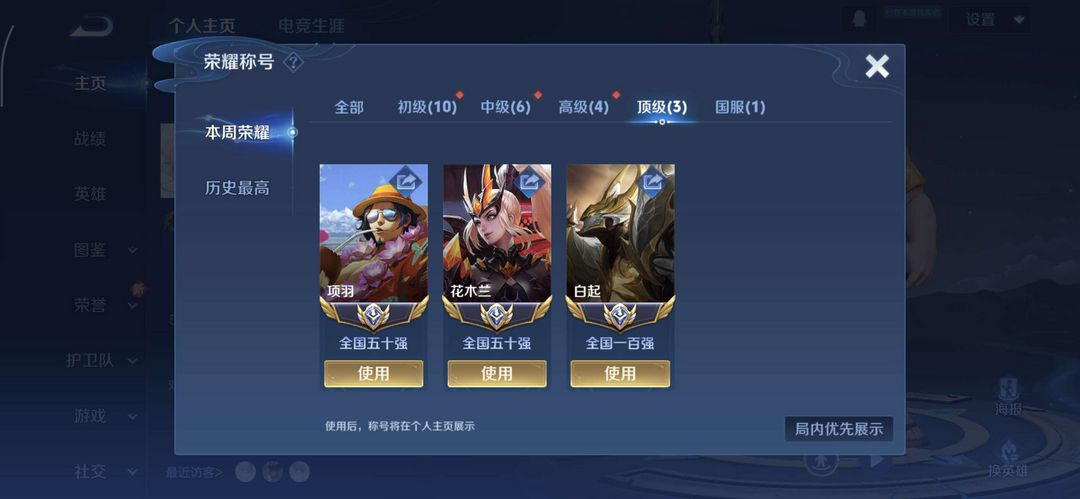 十二月现在榜国服项羽大国标项羽、国服花木兰、国服白起、现巅峰2010分[抢先]不禁言[禁巅峰]
