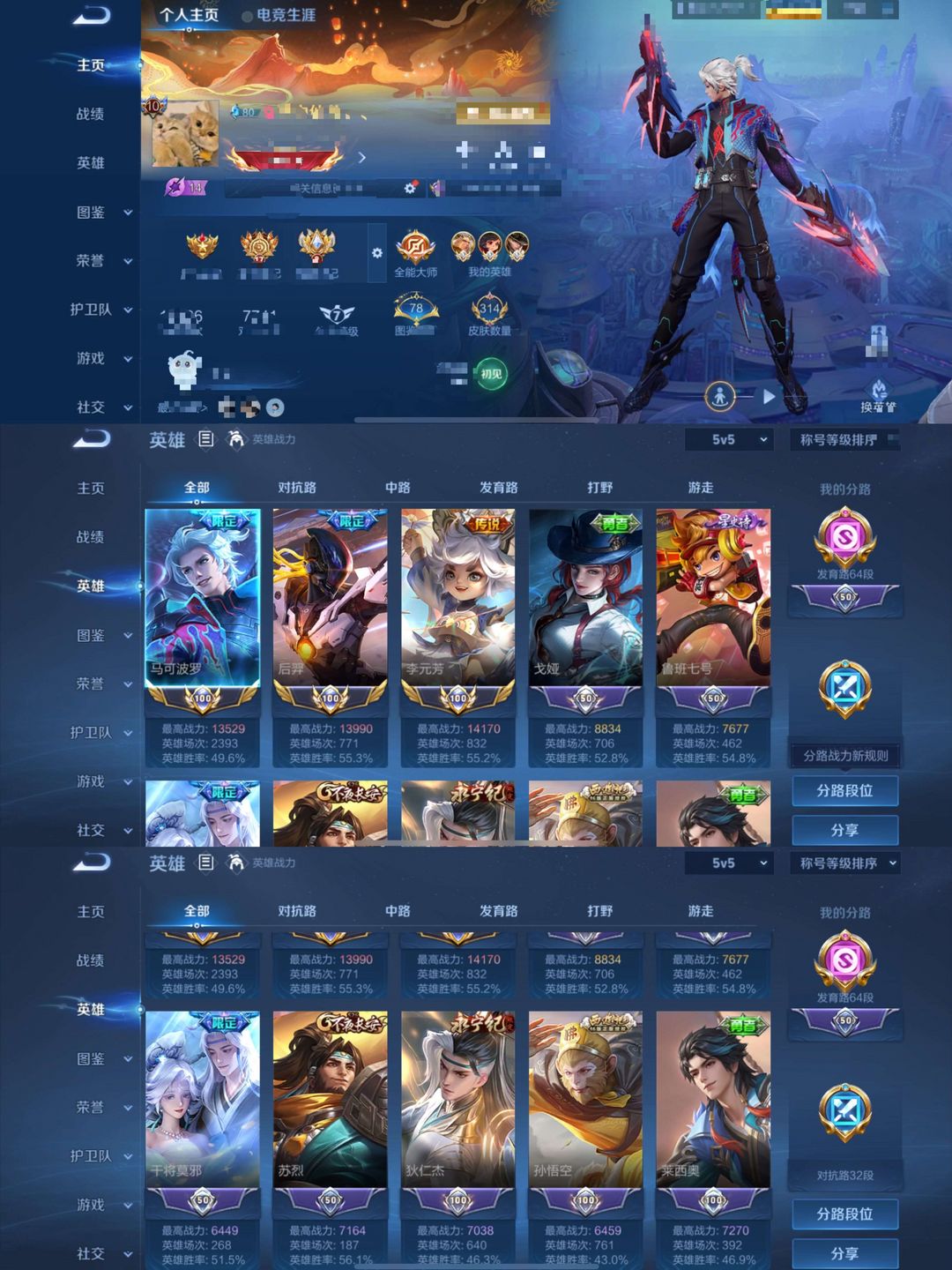 发育路64段!3小国马可波罗后羿李元芳!V10!341皮肤3水41传说!深海之息无尽星芒异界灵契碎云
