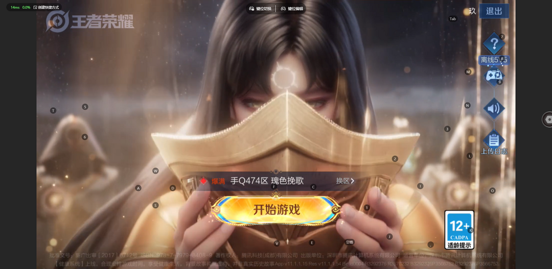 游戏区服:王者荣耀-QQ安卓-QQ账号 -手Q474区-瑰色挽歌