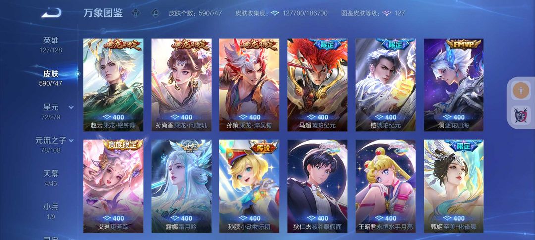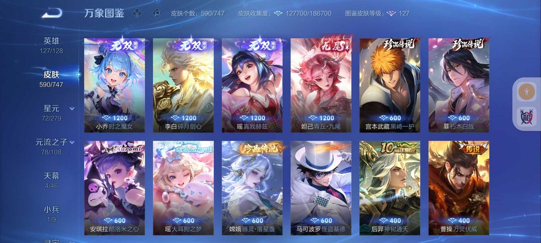 无双V10❤590皮肤❤️11水晶7无双❤️大耳狗小兵❤️凯水晶❤️天机白泽宫本暃珍品❤️91传说皮