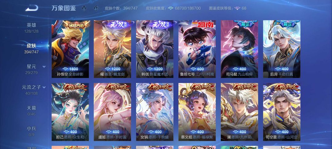 ❤满蛇年限定❤名侦探柯南❤历史国服芈月嬴政❤曜韩信无双❤孙悟空典藏❤55传说❤