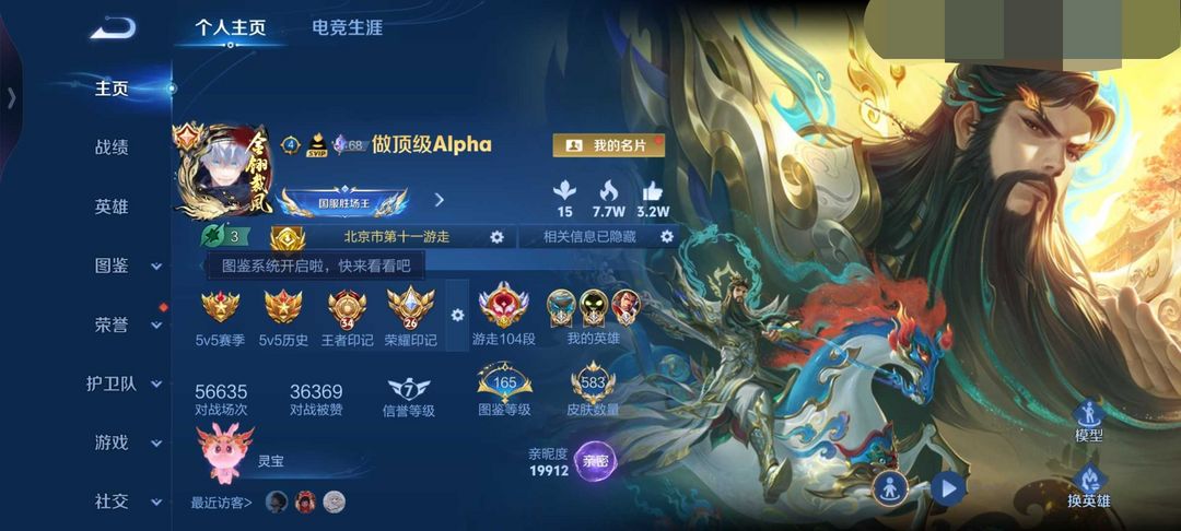 游戏区服:王者荣耀-QQ安卓-QQ账号 -手Q7区-叛逆吟游