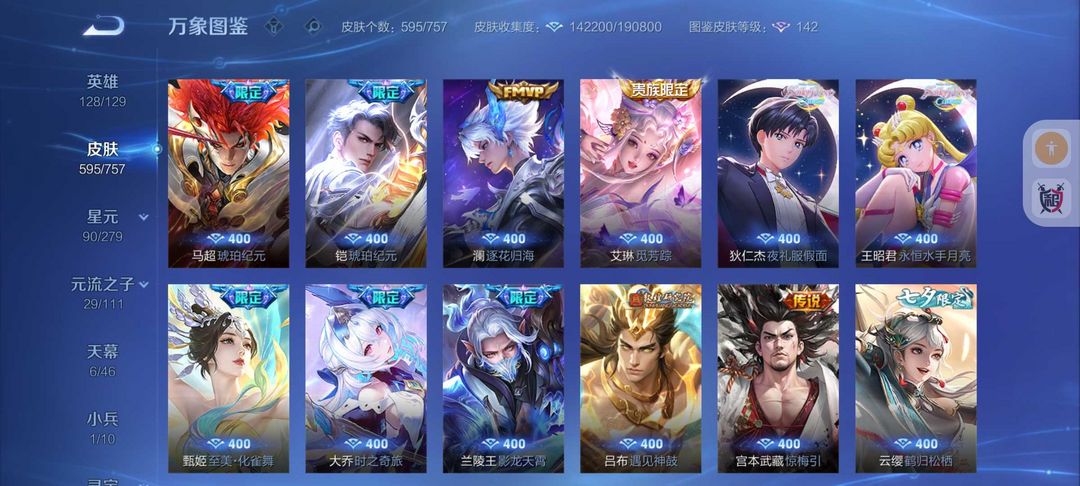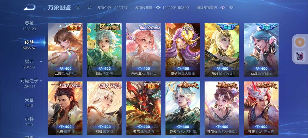 595皮肤❤16典藏9无双皮❤102传说kitty小兵6天幕❤离烟恨花合斗❤6珍品传说❤9星传说皮5