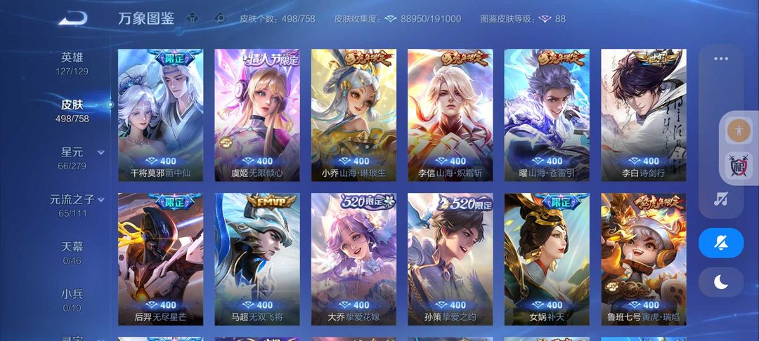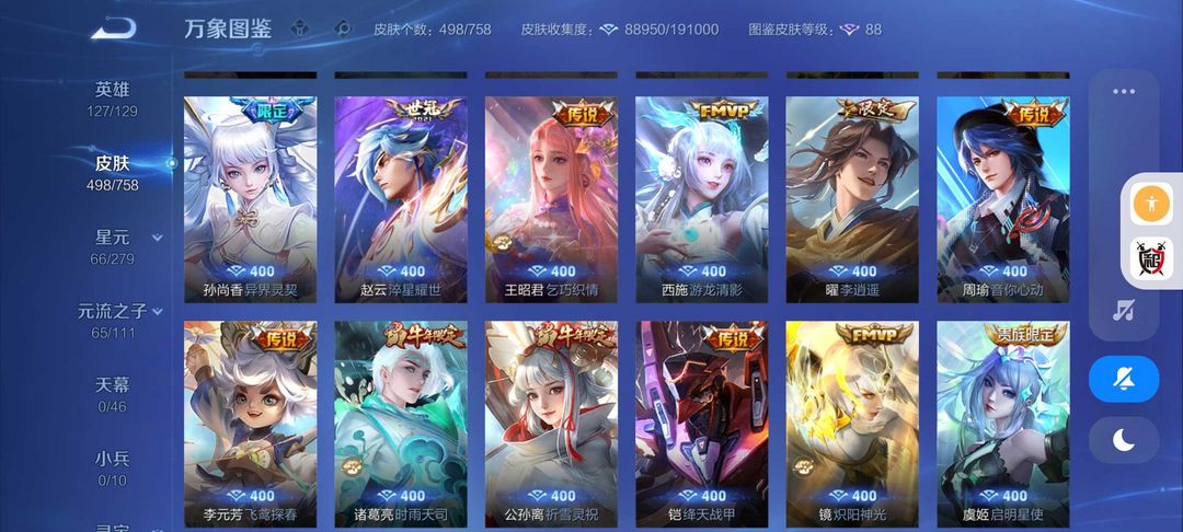 498皮肤王者十年玩家❤4典藏64传说皮❤满蛇年限定满龙年限定❤九霄神辉鸣剑❤全息皮❤金貂蝉