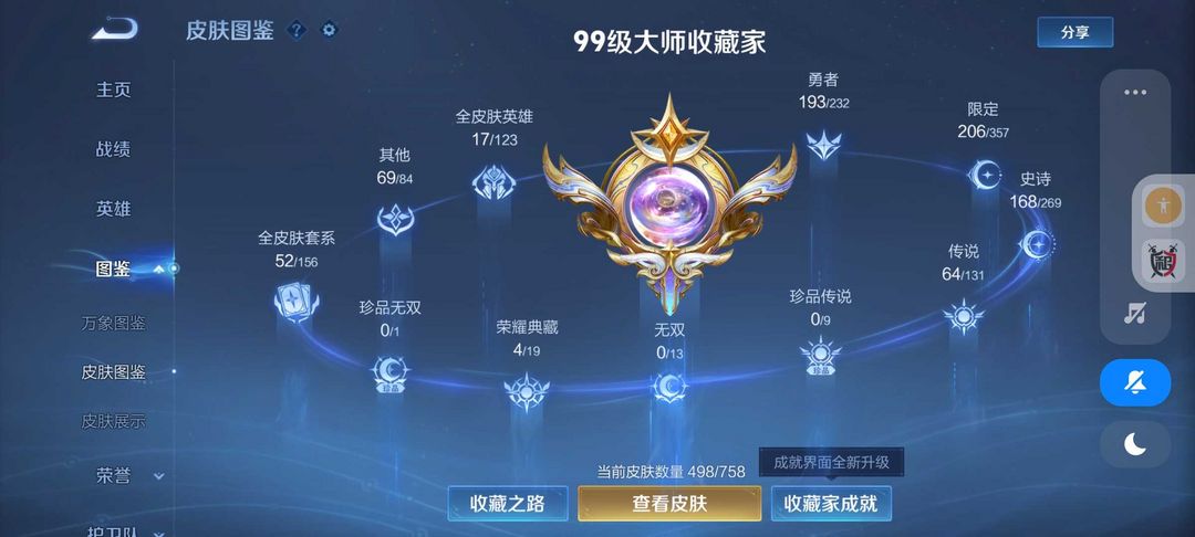 装备描述:498皮肤王者十年玩家❤4典藏64传说皮❤满蛇年限定满龙年限定❤九霄神辉鸣剑❤全息皮❤金貂蝉