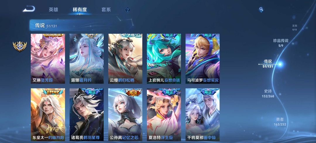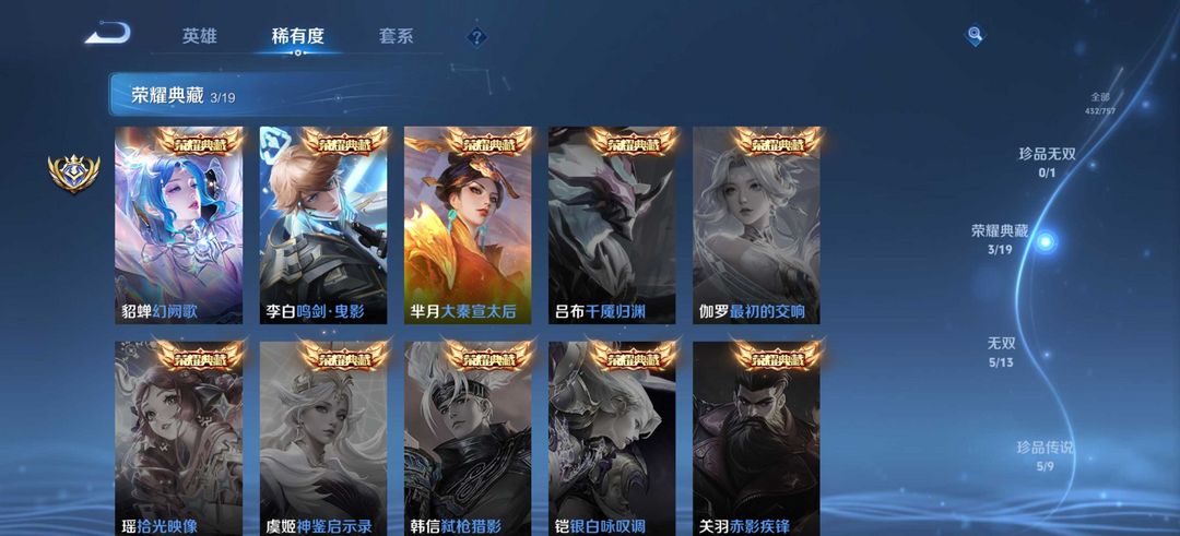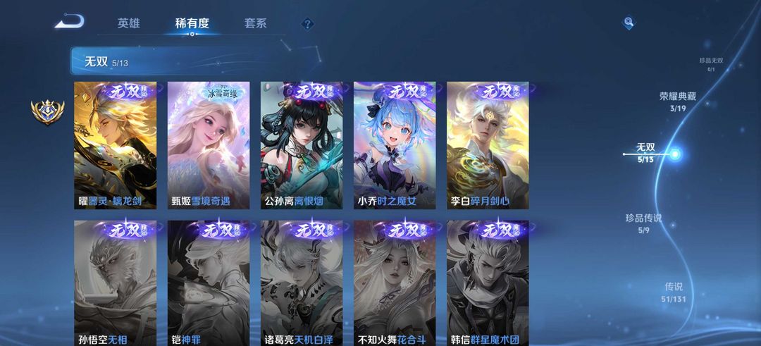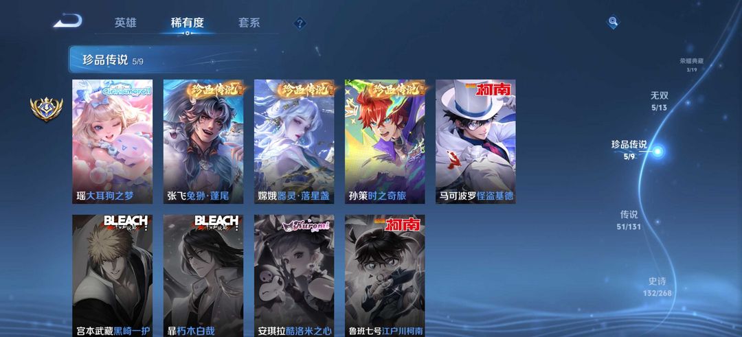 v10⚡435皮 5无双3典藏5珍品传说 雪境奇遇⚡离恨烟⚡时之魔女⚡怪盗基德