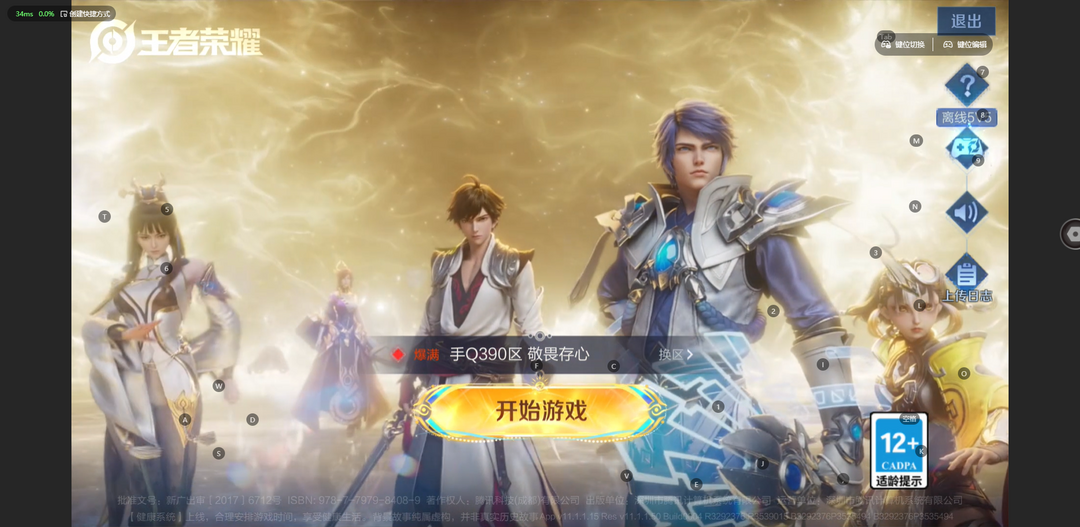 游戏区服:王者荣耀-QQ安卓-QQ账号 -手Q390区-敬畏存心