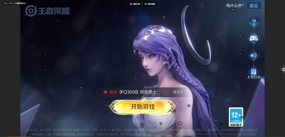 游戏区服:王者荣耀-QQ安卓-QQ账号 -手Q369区-异变领土