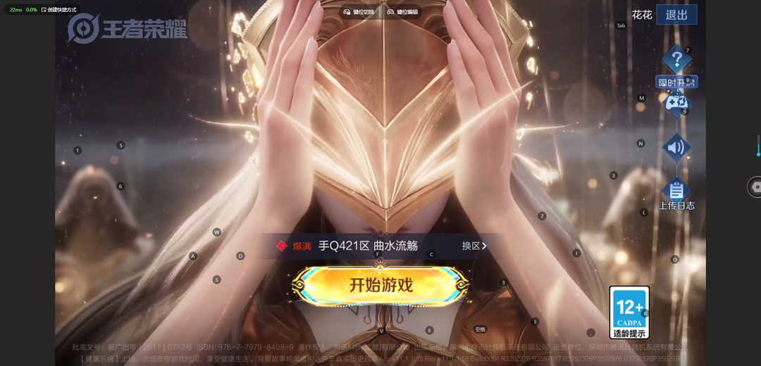 游戏区服:王者荣耀-QQ安卓-QQ账号 -手Q421区-曲水流觞