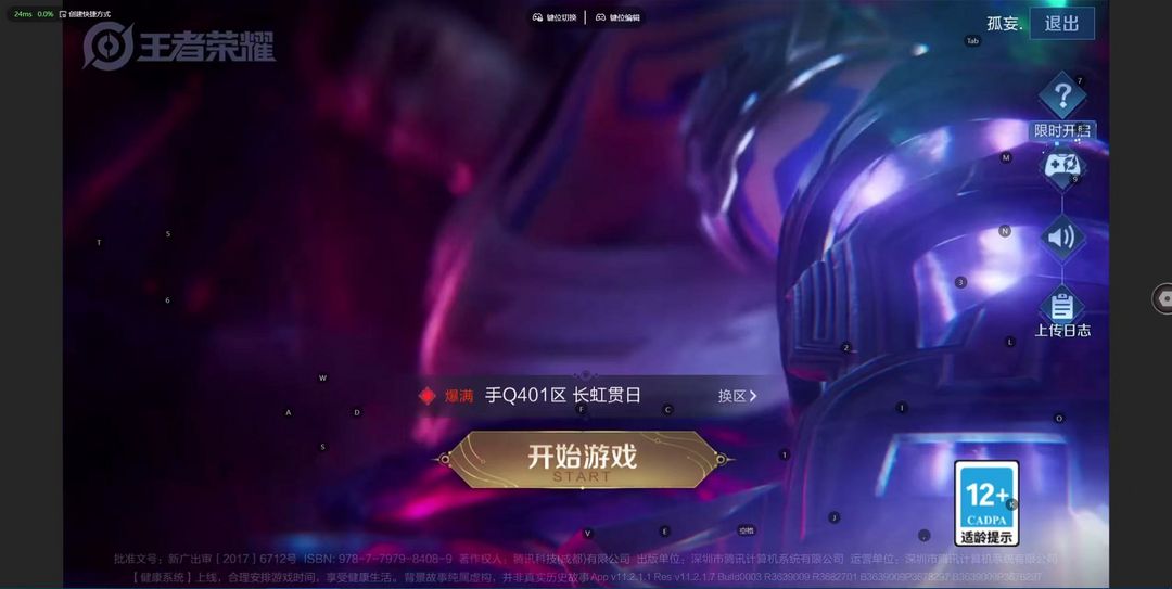 游戏区服:王者荣耀-QQ安卓-QQ账号 -手Q401区-长虹贯日