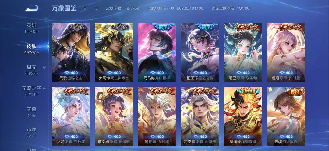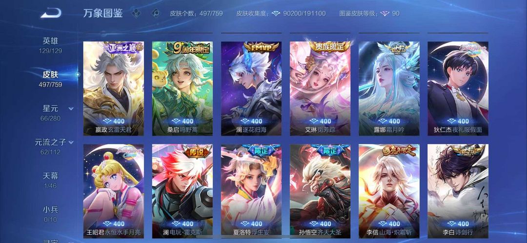 497皮肤❤5典藏5无双❤凯神罪多万战13金标打野55段发育路42段❤曜李白韩信无双❤诡秘之主联动满