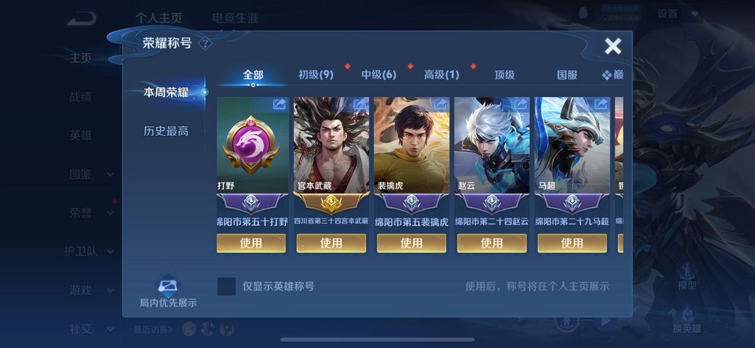 游戏区服:王者荣耀-QQ苹果-QQ账号 -手Q118区-御狮之名