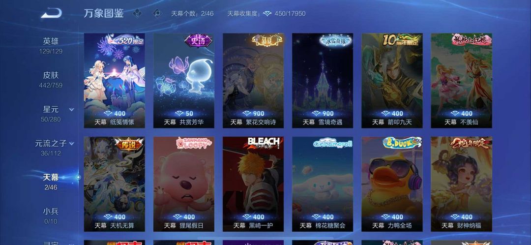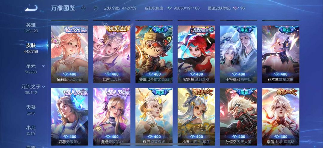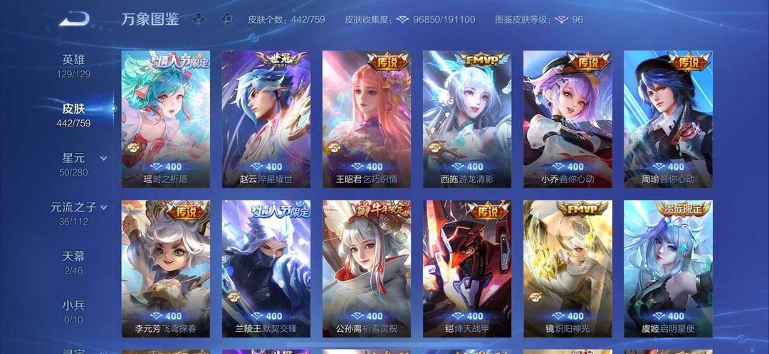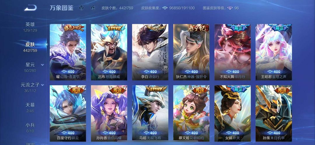 442皮肤15典藏❤女号2天幕❤62传说皮❤满蛇年限定凯瑶伽罗貂蝉典藏4星传说
