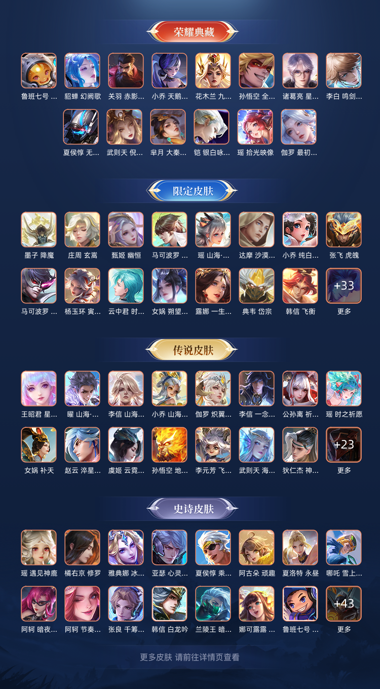 装备描述:442皮肤15典藏❤女号2天幕❤62传说皮❤满蛇年限定凯瑶伽罗貂蝉典藏4星传说