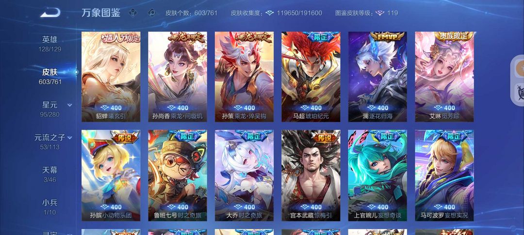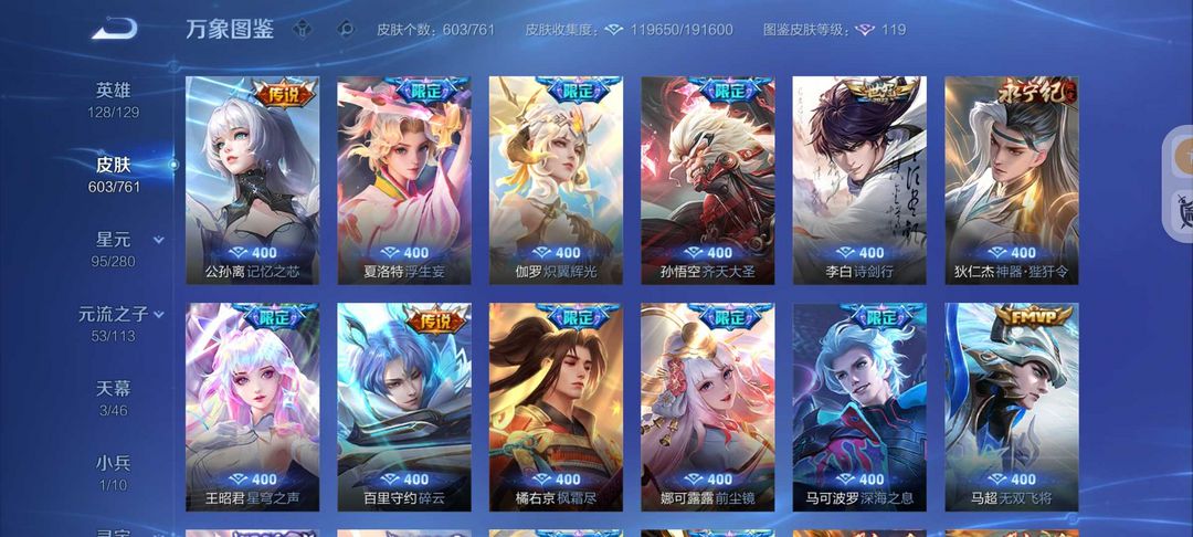 603皮肤❤对抗路48段10金标❤kitty小兵❤603皮肤6典藏7无双84传说❤天机白泽螭龙剑花合