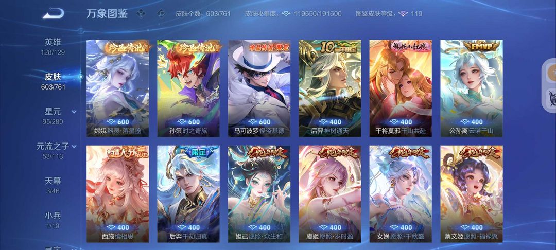 装备描述:603皮肤❤对抗路48段10金标❤kitty小兵❤603皮肤6典藏7无双84传说❤天机白泽螭龙剑花合斗❤凯典藏怪盗基德