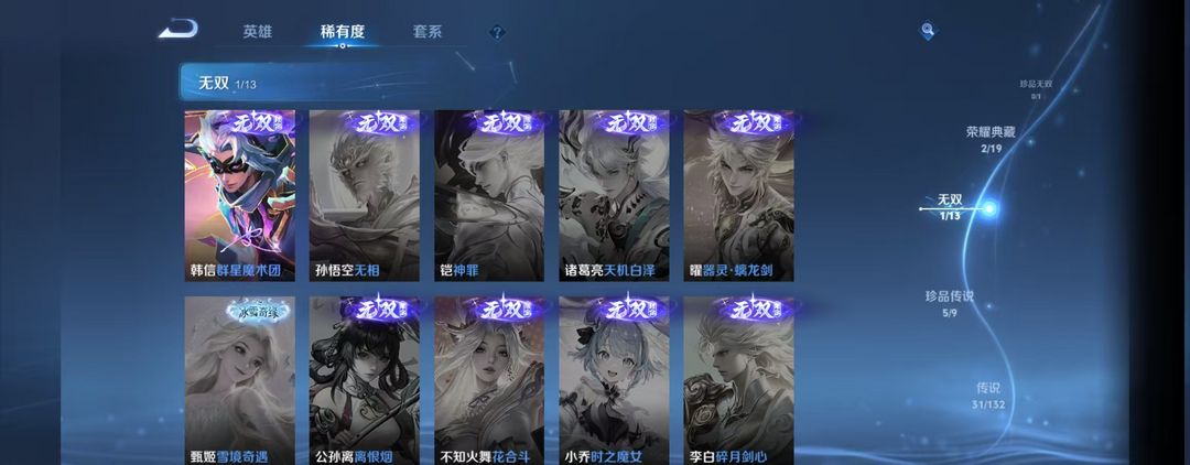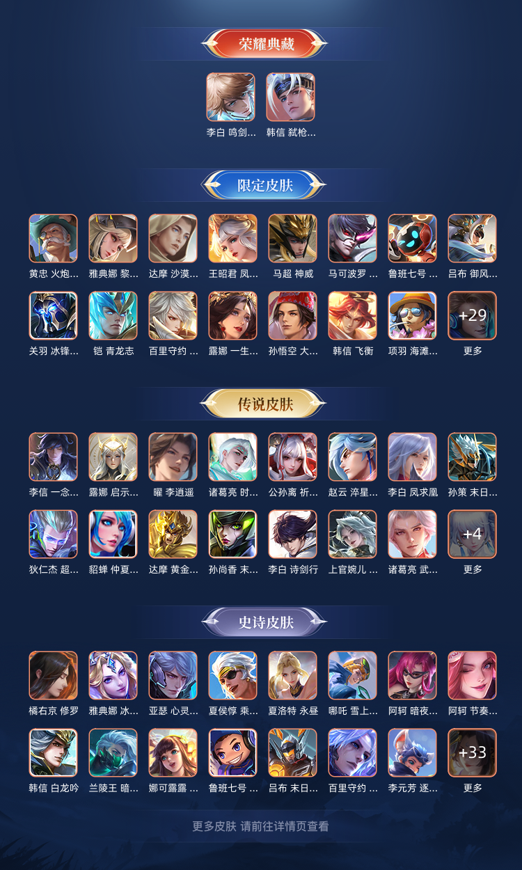 V10丨414皮肤丨3典藏水晶韩信无双丨宫本暃安其拉张飞马可珍品丨包天特惠