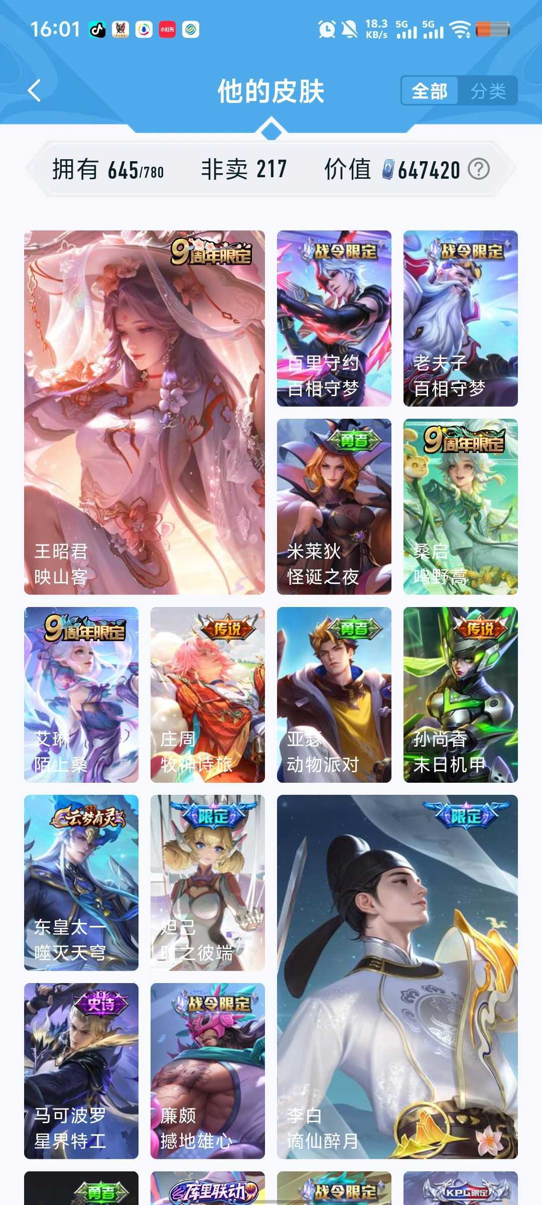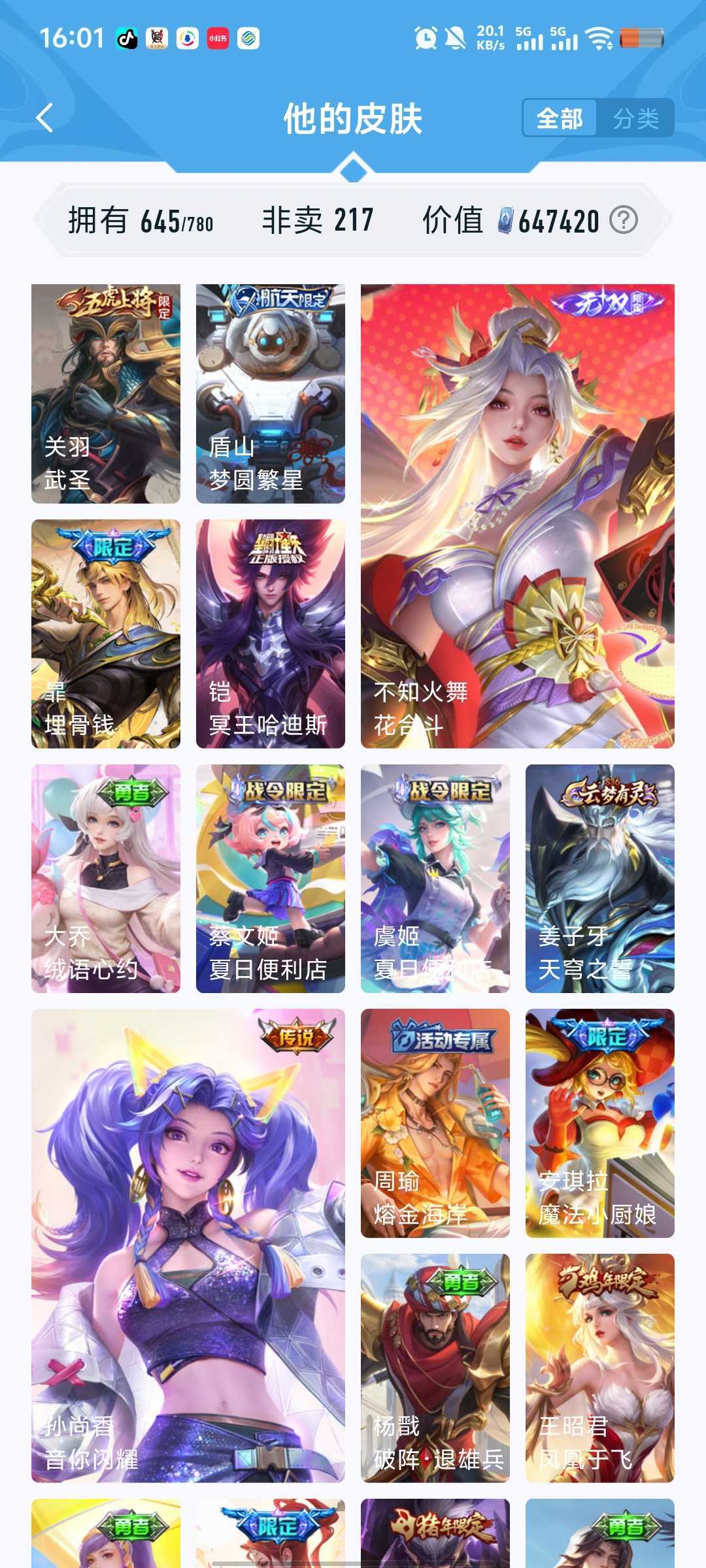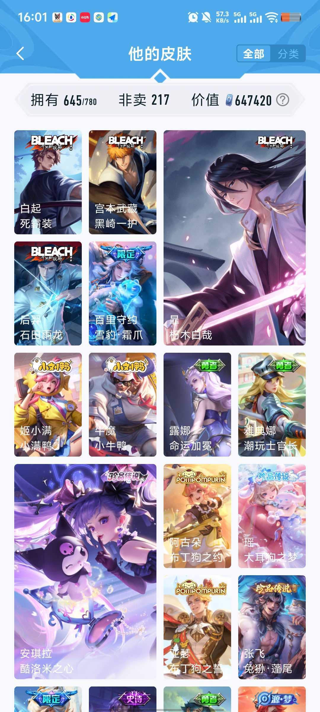 645皮珍品传说9无双5典藏7伽罗沧流箭吕布归渊暃朽木白哉黑崎一护安琪拉酷洛米瑶大耳狗兔狲蓬诡秘之主
