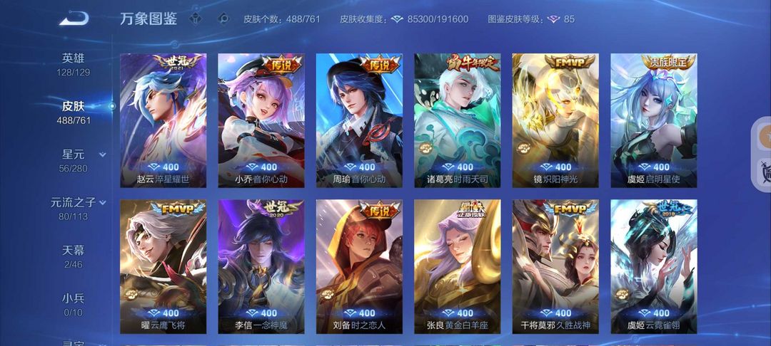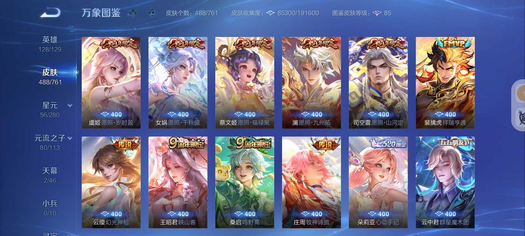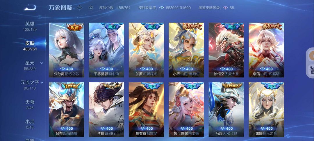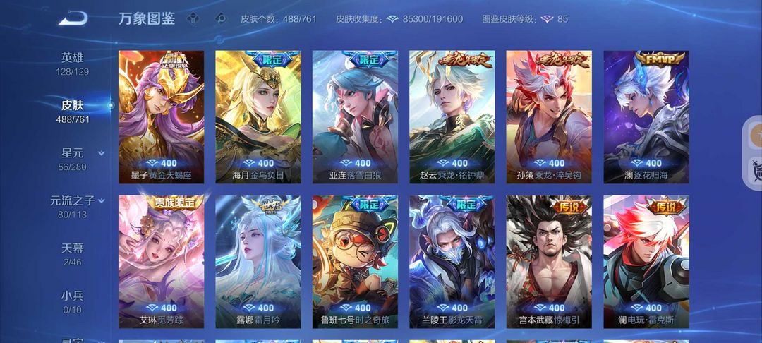 488皮肤2典藏3无双61传说❤螭龙剑怪盗基德❤满蛇年云诺千山❤