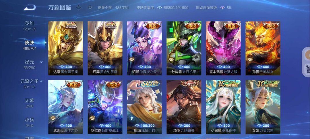 装备描述:488皮肤2典藏3无双61传说❤螭龙剑怪盗基德❤满蛇年云诺千山❤