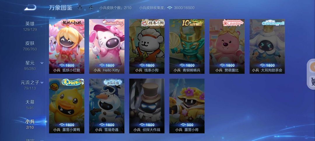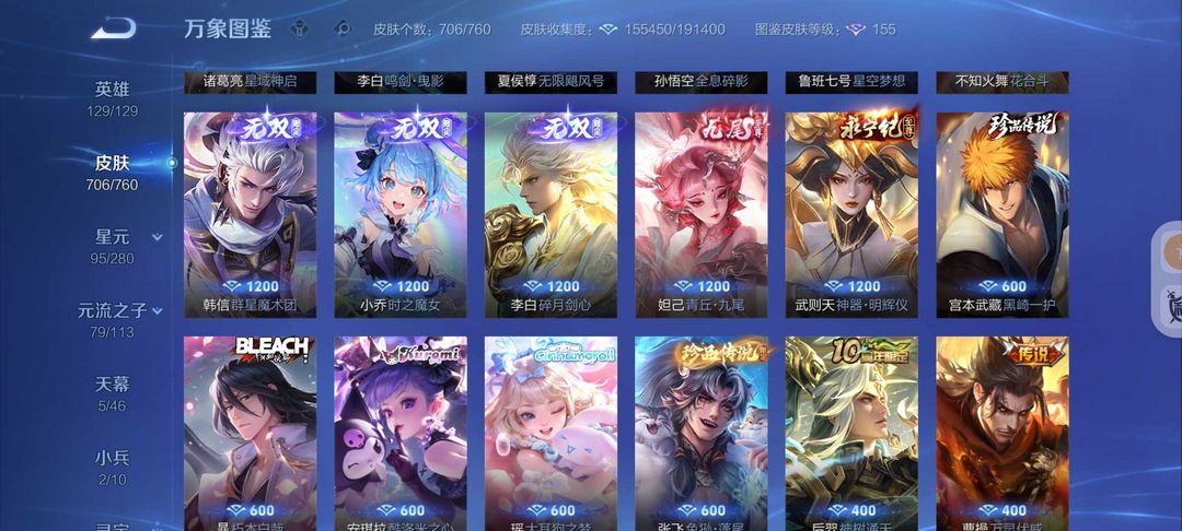 装备描述:706皮肤❤️13典藏2小兵kitty狐妖小兵❤️貂蝉馥梦繁花❤️花合斗宫本暃死神联动120传说诡秘之主❤️大耳狗库洛米