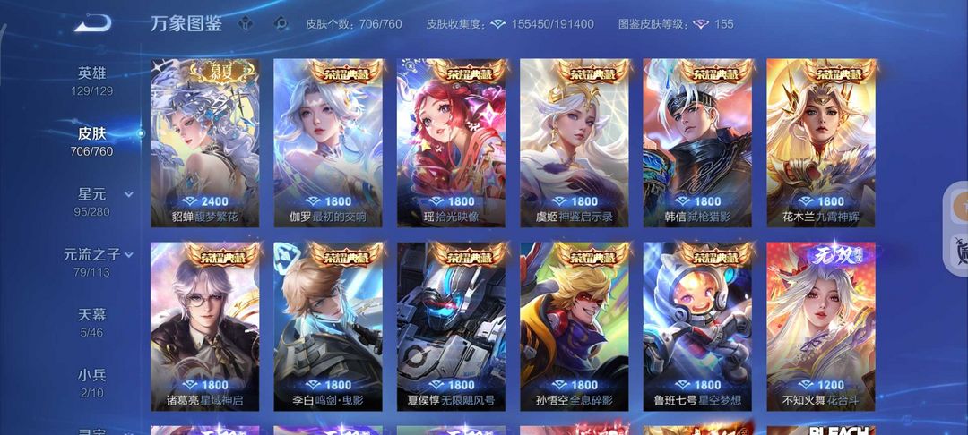 706皮肤❤️13典藏2小兵kitty狐妖小兵❤️貂蝉馥梦繁花❤️花合斗宫本暃死神联动120传说诡秘