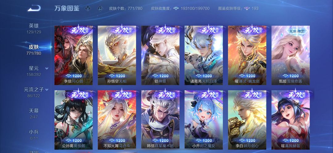 女号【国服嫦娥婉儿】18水晶12无双✨怪盗基德✨青丘九尾✨李信无双✨时之祈愿✨真我赫兹✨马年限定