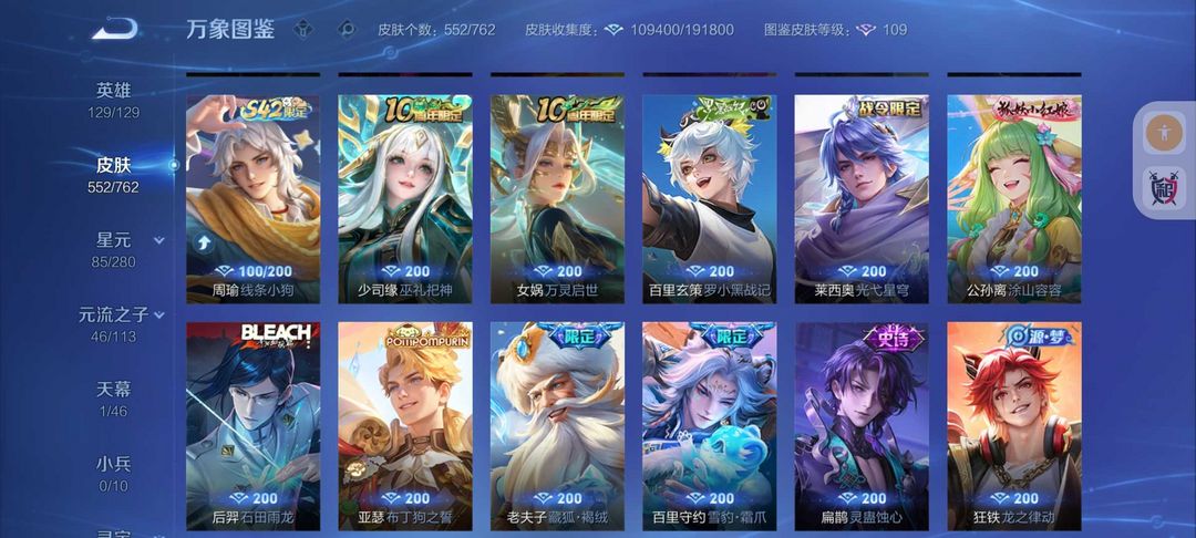 王者十年玩家❤552皮肤14典藏❤59传说❤瑶典藏超值极品账号❤倪克斯神谕❤