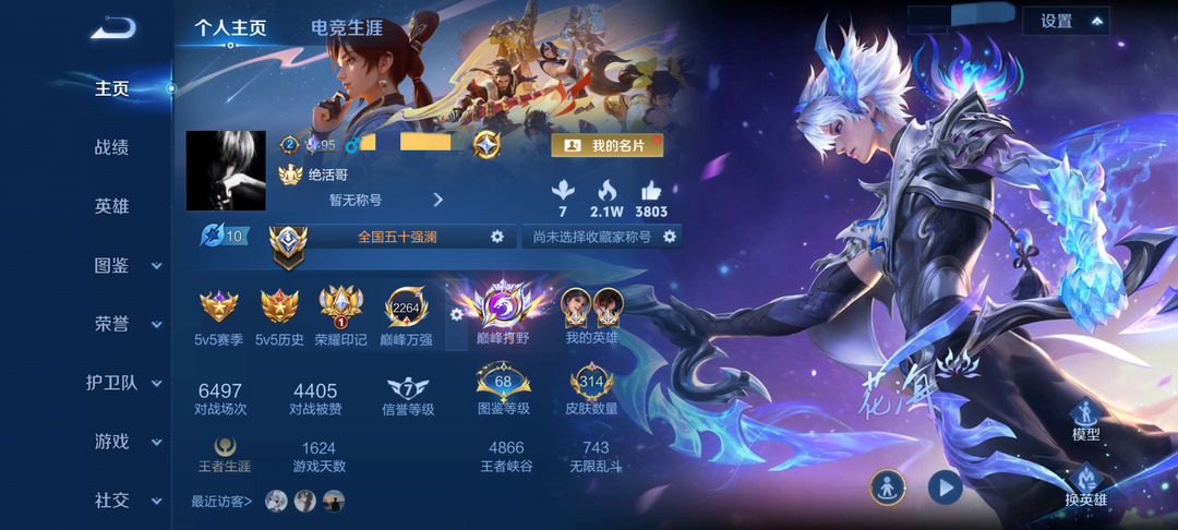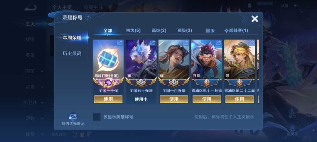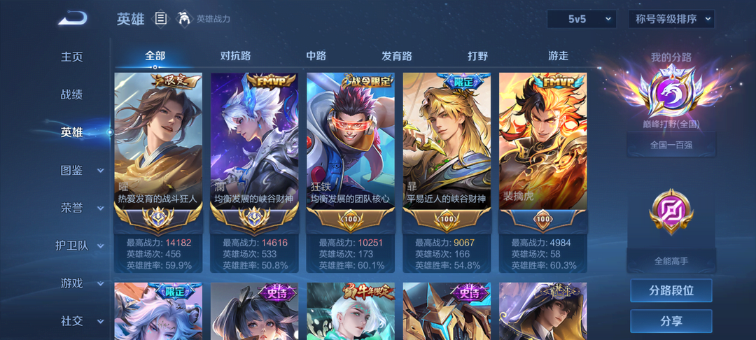 禁巅峰✨正式服/3月在榜小国服澜-金标曜 巅峰2250打野巅峰框⚡️澜曜全皮