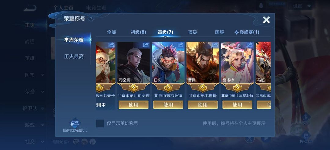 游戏区服:王者荣耀-QQ安卓-QQ账号 -手Q60区-逆袭之刃