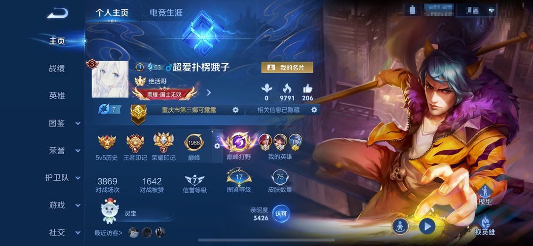 在榜巅峰万强中路+重庆第三娜可第16韩信30诸葛现三个11000战力 可排位禁巅峰
