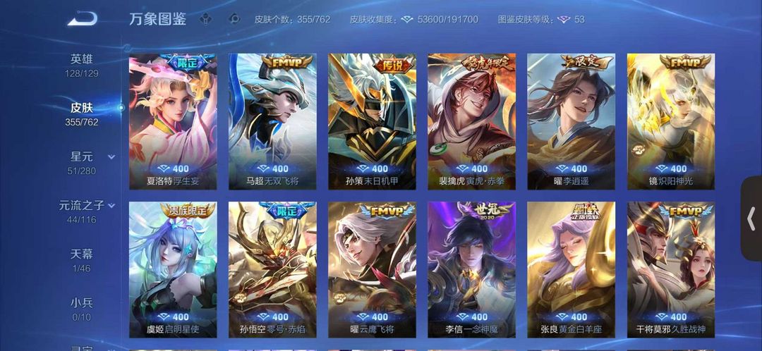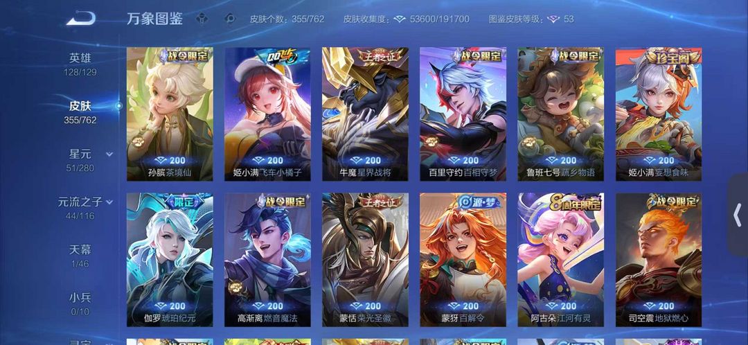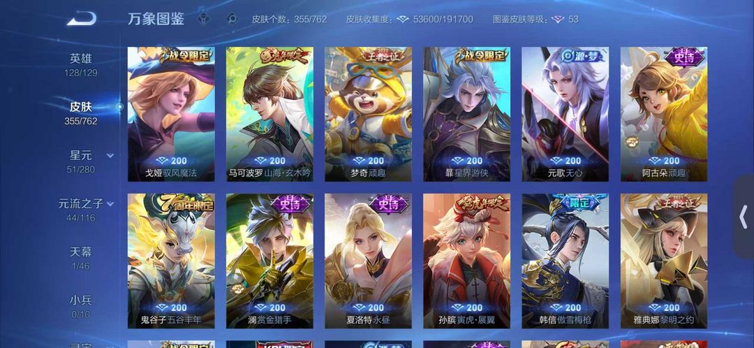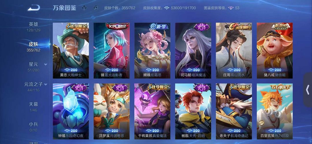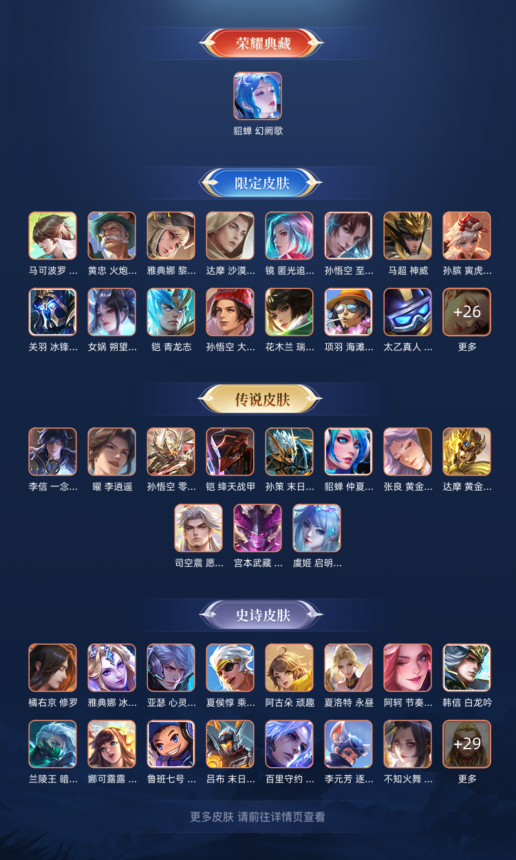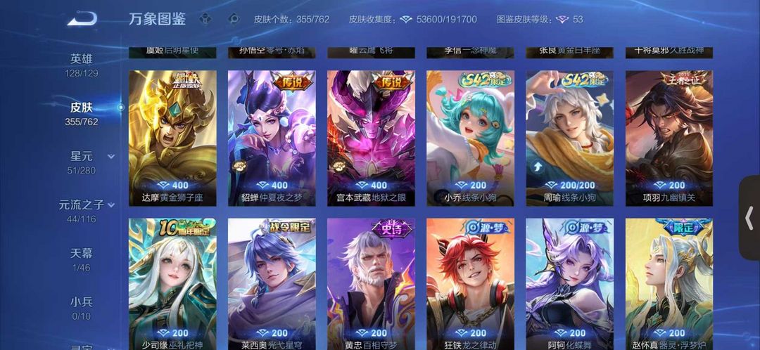 ✨355皮肤✨瑶无双✨李白无双✨传说24✨史诗107✨限定121
