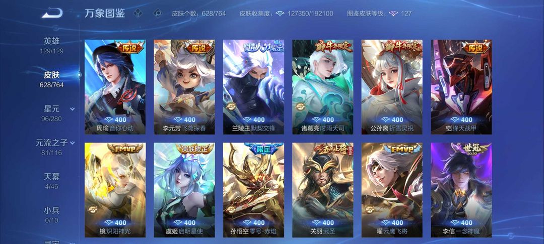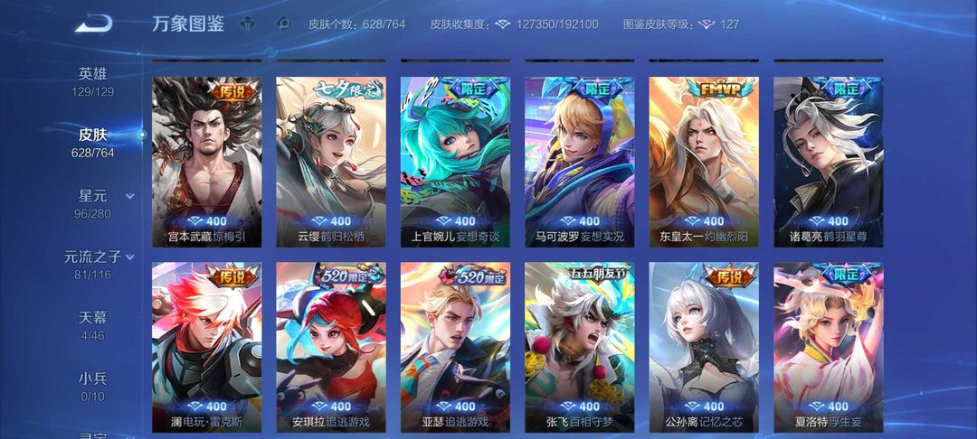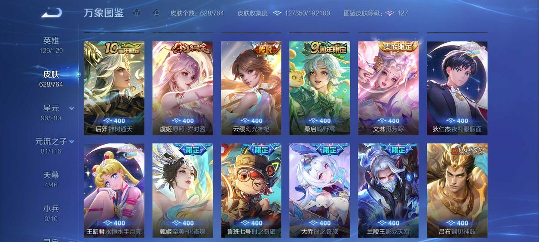 装备描述:628皮肤10典藏3无双❤️93传说❤️凯伽罗瑶典藏9星传说皮肤❤️蛇年限定皮❤️