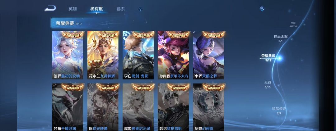 高危禁排位匹配丨V9丨455皮肤6典藏水晶丨瑶珍品丨安其拉珍品丨包天特惠
