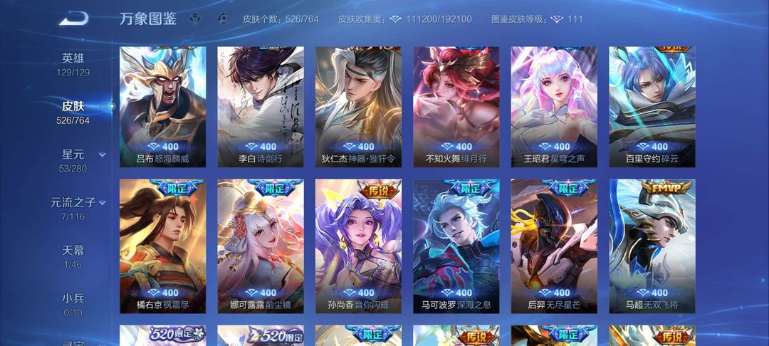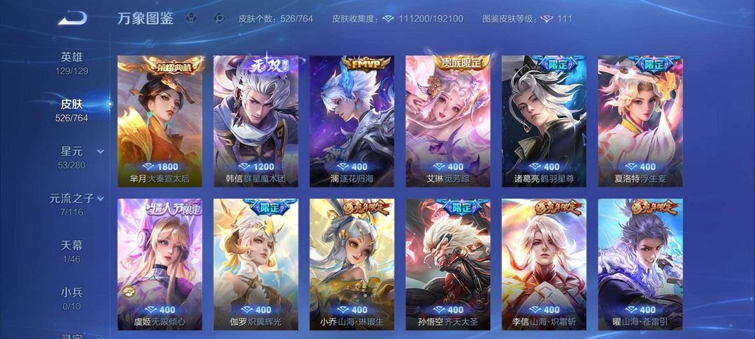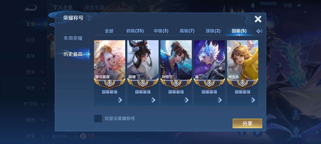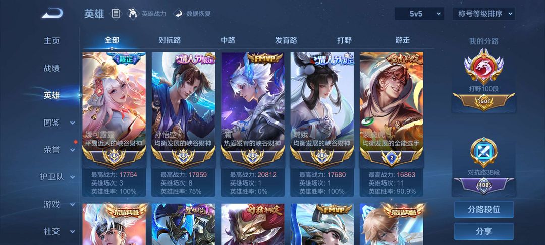 顶尖国服百段打野✨2w分大国标澜✨五大国服✨国服猴子嫦娥露露✨极品贵族十✨多皮肤多典藏