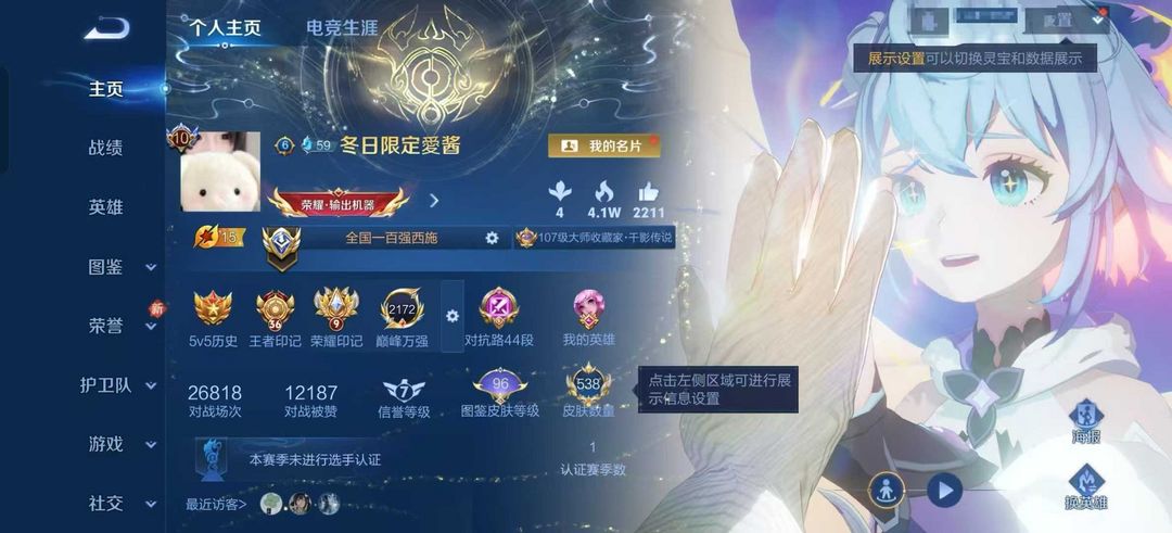 目前只能娱乐模式!正式服二月在榜小国标西施❤️女号❤️巅峰万强闪电框+省标小乔❤️1w4战力高胜率