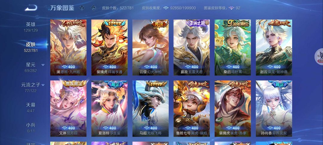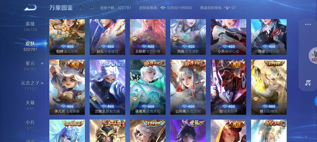 522皮肤国服1.5W司马懿❤️巅峰魔方打野47段❤️6典藏5无双皮❤️猴子无相无双昭君FMVP❤️