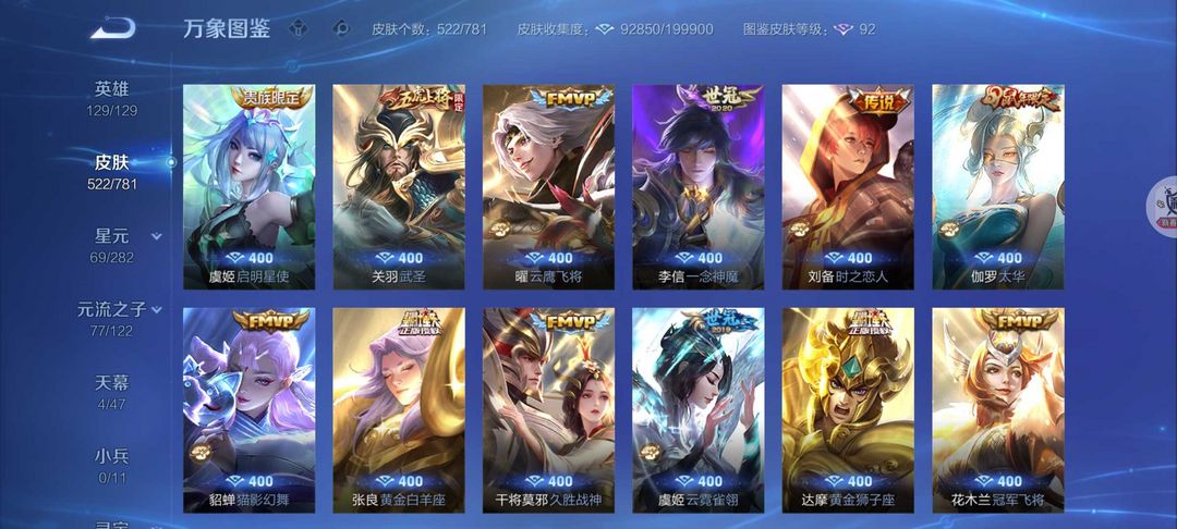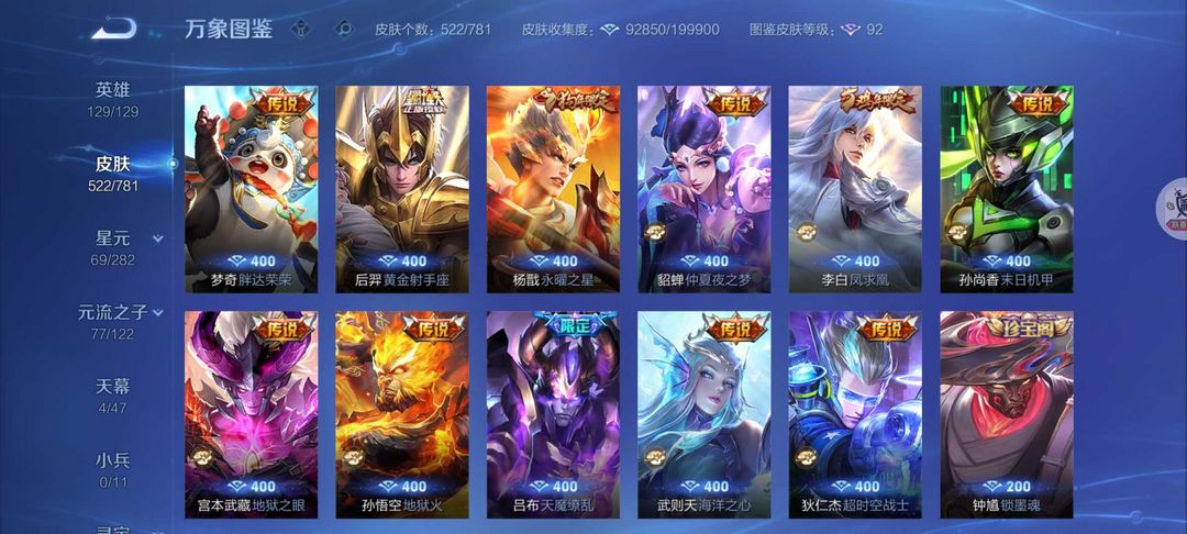 装备描述:522皮肤国服1.5W司马懿❤️巅峰魔方打野47段❤️6典藏5无双皮❤️猴子无相无双昭君FMVP❤️蛇年限定皮❤️