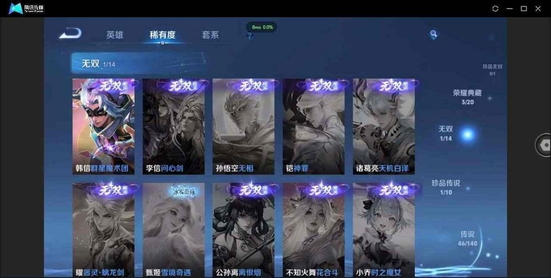 3典藏/6星传说/群星艺术团/怪盗基德/46传说//18个性按键/米莱迪孙权司空震嬴政刘邦达摩全皮