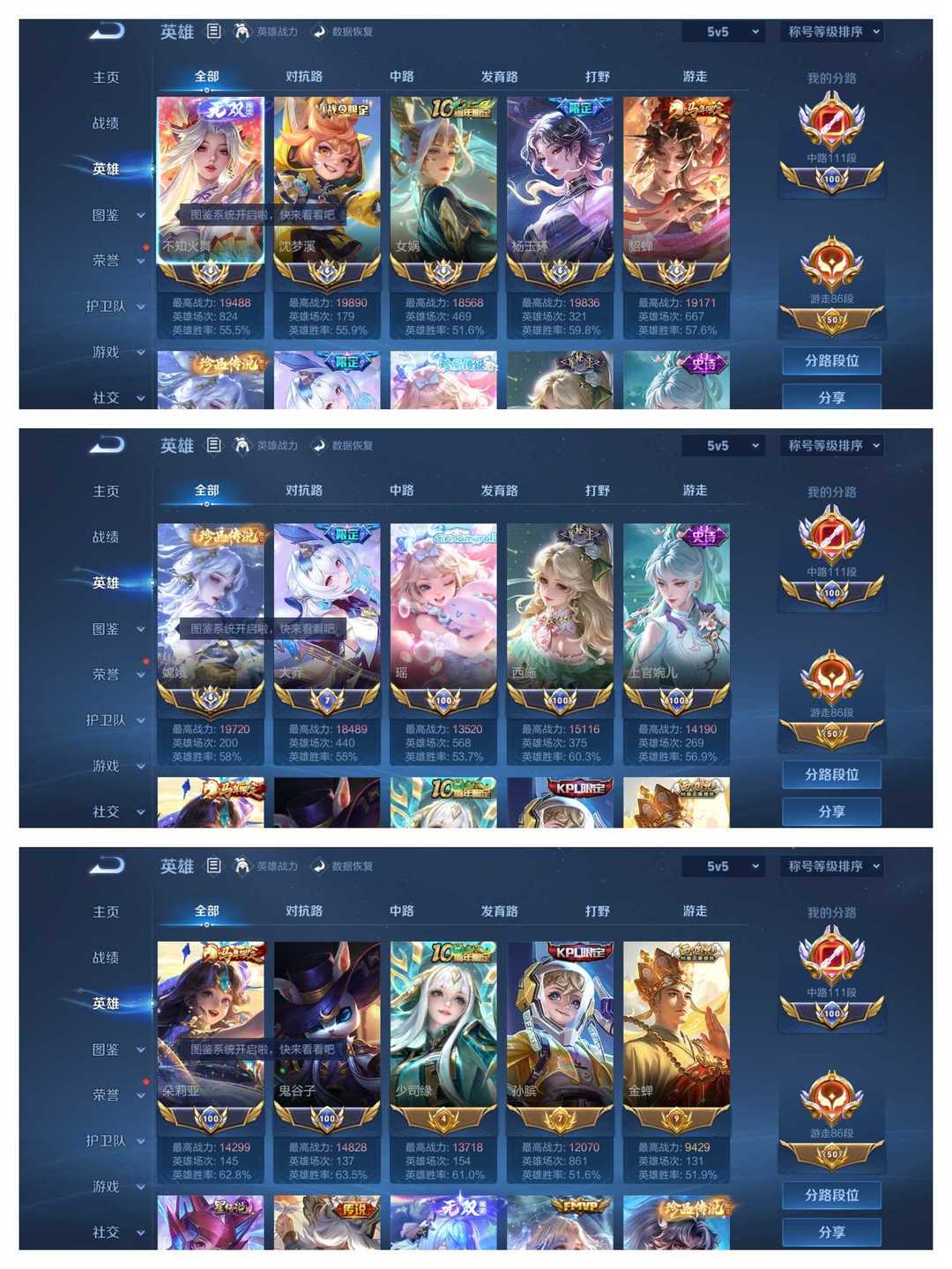 马年新皮全补⭐国服百段中路111段游走86段⭐大国服貂蝉杨玉环女娲火舞⭐国服瑶⭐国服西施朵莉亚大乔
