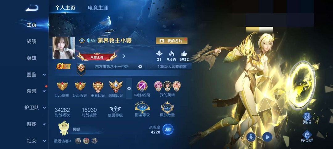 游戏区服:王者荣耀-QQ安卓-QQ账号 -手Q461区-蛮荒漠地
