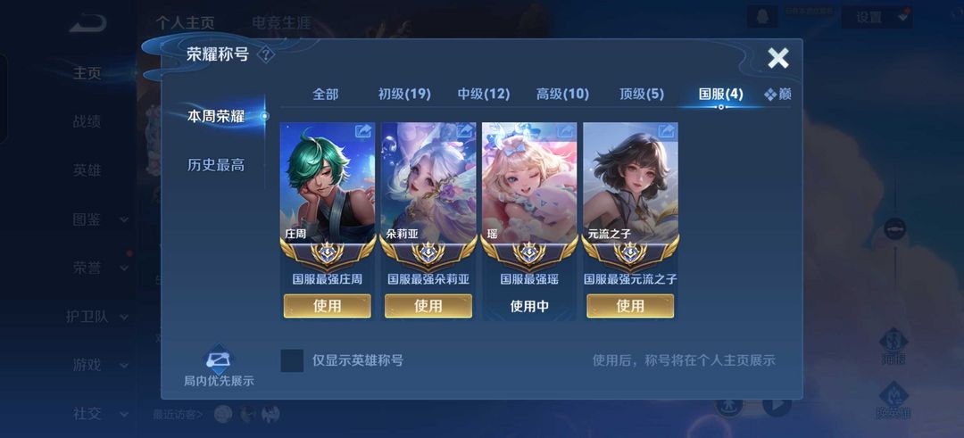 三月在榜国服瑶朵莉亚元辅庄周⭐️历史国服妲己虞姬后羿⭐️禁巅峰⭐️抢先服二区⭐️