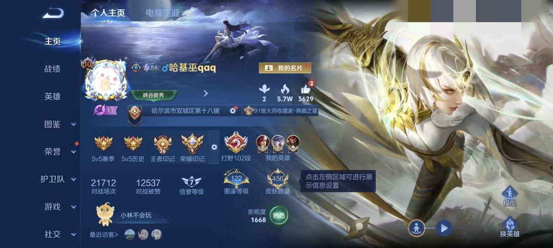 游戏区服:王者荣耀-QQ安卓-QQ账号 -手Q537区-忆丹青