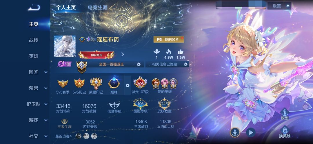 禁巅峰✨在榜国服107段游走✨漂亮小姐姐号✨历史12大国/历史国服瑶蔡文姬明世隐沈梦溪等