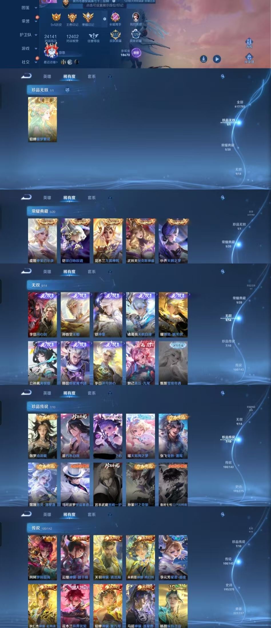 9无双7珍品100传说✨罗刹妄海问心剑✨苍流箭全马年✨木兰情限无相✨全十周年万灵伏威✨神罪千山共赴